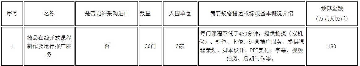 一、采购项目名称:精品在线开放课程制作及运行推广服务