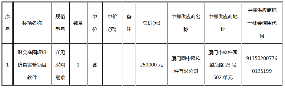 关于kaiyun开云官方财会商圈虚拟仿真实验项目软件的中标(成交)结果公告