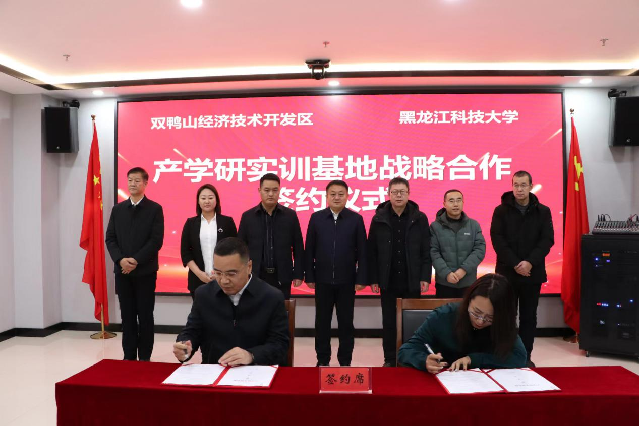 2024年12月13日下午,beat365手机版官网与双鸭山经济技术开发区建立专家工作站、产学研实训基地合作签约仪式在双鸭山科创中心四楼会议室隆重举行。同时,与黑龙江省墨砾新型材料有限责任公司签订了校企合作协议。