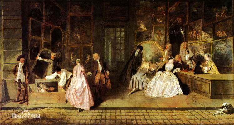 作品简介:让•安托万•华多(1684~1721)的艺术年代,是法国从路易十四过渡到路易十五这一摄政时期的年代。这个时期由于法国对工商业与文化实行奖励政策,资本主义的经济发展较快;文学艺术也出现蓬勃与兴盛。名震欧洲的大剧作家如高乃依、拉辛、莫里哀、拉•封丹等,都是其时法国文坛的风云人物。他们崇尚古典主义,但不尚严格的理性规范。尤其在路易十五时代,艺术上有一种名为“洛可可风格”的时髦倾向,已渐渐取代了普桑时期流行的那种很讲究对称的巴洛克风格了。洛可可风格几乎侵袭了宫廷贵族精神生活的一切领域,不论是绘画、雕塑,还是宫殿装饰,家具与服饰,无不以这种洛可可风格为好尚。这就是画家华多的时代背景。