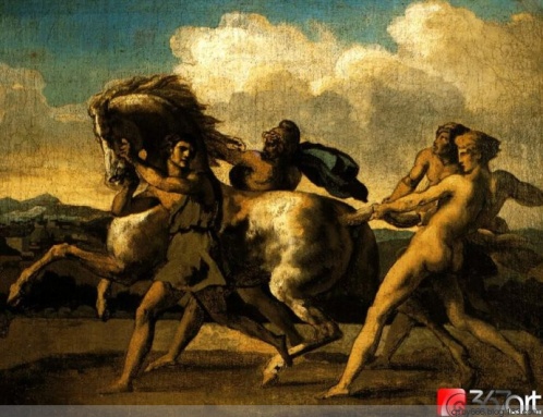 作者简介:籍里柯(Theodore Gericault,1792-1824),法国著名画家,新浪漫主义画派的先驱者。籍里柯生于法国里昂,幼年随全家迁往巴黎,1808年从画马名家霍勒斯•韦尔内学画,席里柯重视绘画中的创新,喜欢描绘宏伟、壮阔的场面。1810年入皮埃尔•纳西斯•盖兰画室,与德拉克洛瓦相识,常去卢浮宫临摹古代大师的名作。从青年时代起他对马和赛马很感兴趣,常用速写出色地抓住马在运动中的姿态,他得金质奖章的《轻骑兵军官》就是在21岁时画的。1814年展出《受伤的重骑兵》。1817年创作了第一批动物石版画。1816--1817年赴罗马学习。回到巴黎后展出了那幅著名的《梅杜萨之筏》。席里柯一生充满坎坷波折,曾因参加保皇派而不得不东躲西藏,怕拿破仑军队抓住;于舅母的畸形恋情,注定了爱情悲剧,并导致家庭破裂;随后,他去了英国学习画马。在英国,籍里柯由于一次意外坠马而英年早逝。他的艺术生涯只有短暂的十年。