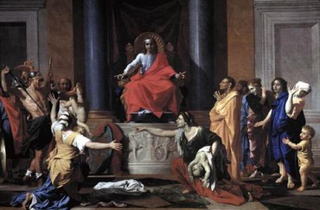 1640年,普桑被路易十三邀请回法国,任宫廷首席画师,并领导装饰王宫的工作。但其他画家的敌视与不合作使他愤然离去。1642年,他离开法国回到意大利,从此再也不愿返回巴黎。1642年,普桑回到罗马以后,不再追求荣誉,只是潜心作画,在永无止境的艺术道路上探索,创作了《七件圣事》、《所罗门的判决》、《利百加》及历史风景画《福西戎的葬礼》、组画《四季》等,这些都是他在生命的最后20年中创作出的杰作,其中,组画《四季》更是超越了传统绘画的寓意语言。