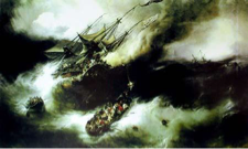 作品寓意:在乌云密布的大海中,风暴来临,船将倾覆,人们纷纷逃上救生船希望能活命,在黑白两色的强烈对比中,画家鲜明的表达了他的想法—生命和意志不可战胜。