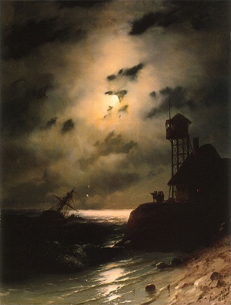 作家简介:伊凡•康斯坦丁诺维奇•艾瓦佐夫斯基(Ivan Konstantinovich Aivazovsky,1817~1900),亚美尼亚裔俄国画家,以海景画著名。1833年在彼得堡皇家美术学院学习期间,作风景画《海上的空气》、《风平浪静》,赢得了声誉。1844年从意大利进修回国后,学院授予他院士称号。代表作《九级浪》(藏俄罗斯博物馆)、《黑海》(藏特列恰可夫画廊 )、《贩货的牛队》等,具有浪漫主义气息,又有写实主义的特点。一生画有约6000件作品,近一半是油画。他所在的费奥多西亚的画室,是当时俄国南方的美术中心,培养了许多出色的画家。