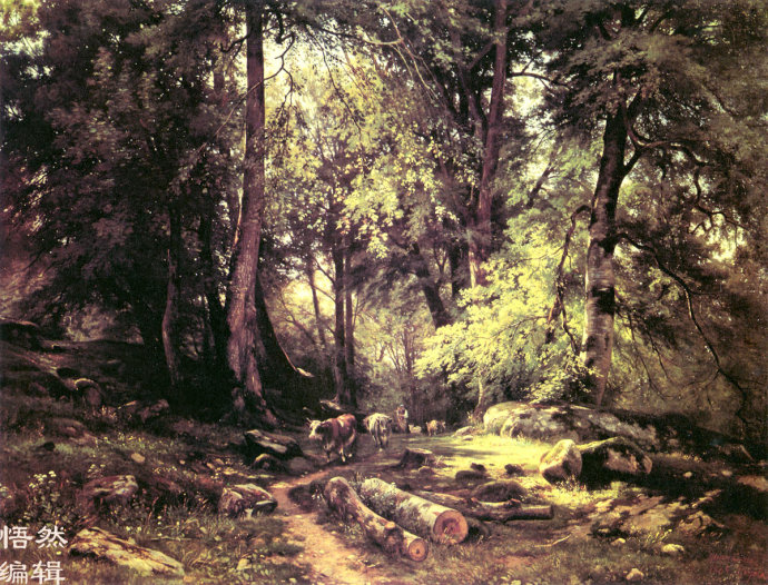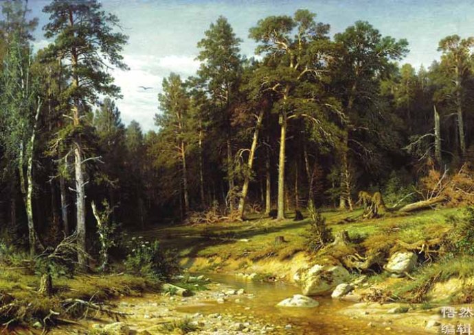 作者简介:伊凡 希什金(Ivan I. Shishkin,1832—1898)生于叶拉布加。受业于莫斯科绘画雕刻建筑学校和彼得堡皇家美术学院,毕业作品因获大奖而以公费赴德国、瑞士进修。1860年回国,获美术院士称号。曾积极参加巡回展览画派活动。他长于风景画,80年代是其创作盛期,代表作《在平静的原野上》以一首民歌为主题,描绘细致,构图富有节奏,具有诗一般的境界。《橡树林》、《松林的早晨》等均以卓越的技巧描绘了晨曦中森林的神秘。因作品中多表现树木,有“森林歌手”和“为万树写照”的美誉。晚年在皇家美术学院任教。主要作品分别保存于莫斯科特列恰可夫画廊、圣彼得堡俄罗斯博物馆。
