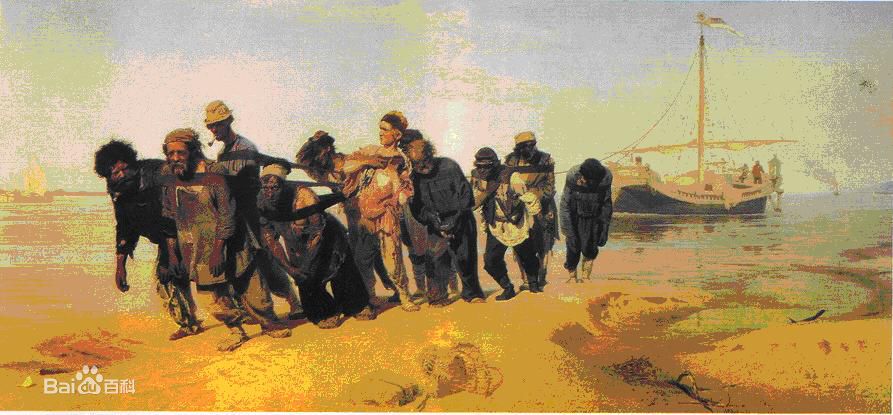 作品名称:《伏尔加河上的纤夫》