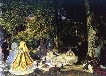 作者简介:克劳德•莫奈(Claude Monet,1840年11月14日-1926年12月5日),1840年生于法国巴黎。早年随风景画家布丹学习绘画,1862年进入格莱尔画室学习。他与学院派艺术趣味无法取得一致,两年后便愤然离开了格莱尔画室, 开始探索独立的绘画技法。1874年,莫奈发起和组织了第一届印象派画展。就在这次画展中,莫奈的一幅《日出•印象》引起了画坛的强烈震动。莫奈也一举成名。当年莫奈在画家户外作画的影响下,开始注意画天空、大气和人物在大自然的光照中的复杂色彩。这些以自然界的光色变化为目标的绘画技巧并非轻而易举。1866年,莫奈在完成了《》以后,在翁弗勒又画了一幅《》。当时由于名单被弄混,差一点被当作马奈的作品而受到观众的首次赞赏。就这一幅《》上对空气与反光的描绘看,莫奈的"印象派"风格已初步形成了。正在这时,爆发,莫奈逃离法国,为避战乱住在阿姆斯特丹,后又到英国。英国的雾都伦敦刺激了他的画瘾,他渐渐学会表现藏在烟雾中的景物。他在海德公园、泰晤士河上画了许多写生作品。散漫的光线极易发挥画家的小笔触功力。这时,他在尼的引荐下,认识了一位在印象派画史上大名鼎鼎的画商丢朗-吕厄。1871年,在离开伦敦以前,他又对英国风景画大师透纳的作品发生浓厚的兴趣。他深感透纳的外光表现是非常出色的。同年,他回到巴黎。巴黎已经受普法战争和两次暴力的洗礼,第三共和国刚刚在王朝的废墟上建立。画坛上只有马奈享有很高的声誉。莫奈决定离开巴黎,投入乡间大自然的田野、天空与江河的描绘之中。莫奈是法国最重要的画家之一,的理论和实践大部分都有他的推广。莫奈擅长光与影的实验与表现技法。他最重要的风格是改变了阴影和轮廓线的画法,在莫奈的画作中看不到非常明确的阴影,也看不到突显或平涂式的轮廓线。光和影的色彩描绘是莫奈绘画的最大特色。