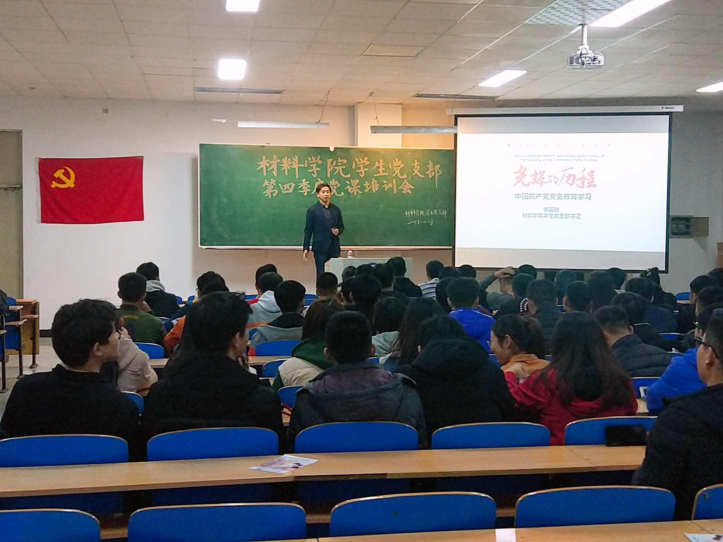 11月8日,beat365手机版官网学生党支部于教学主楼EN0301召开2018年下半年主题党课培训,本次培训的主题是《光辉的历程——中国共产党党史学习》,学院全体党员、本学期确立的积极分子共计160余人参加培训,beat365手机版官网学生工作办公室主任、学生党支部书记邬丽群同志主讲。