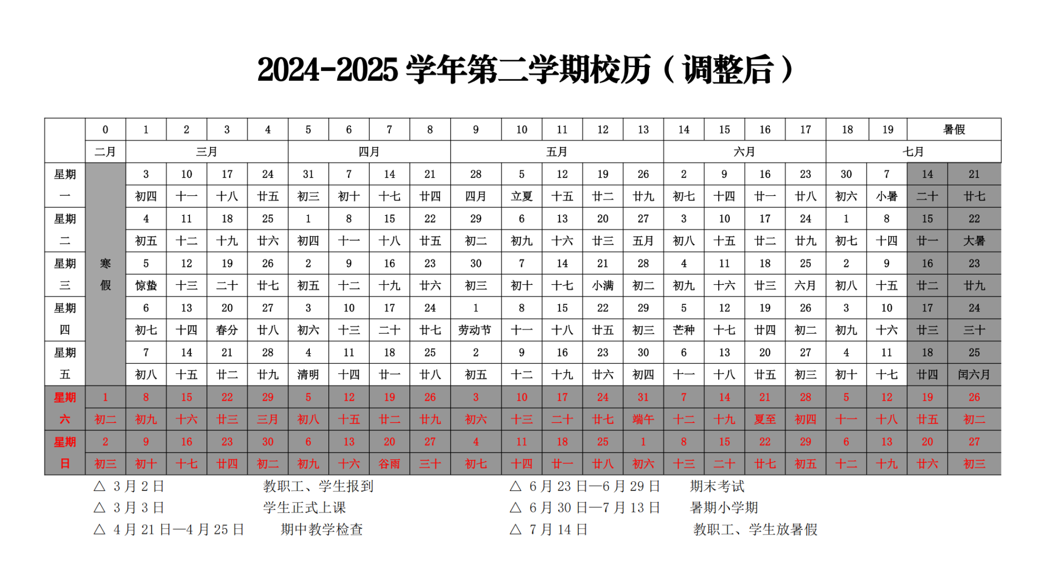 kaiyun开云官方2024-2025学年第二学期校历(调整后)