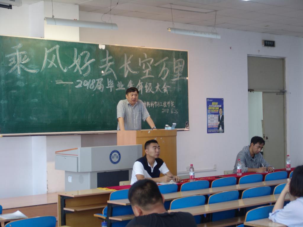 6月26日上午,beat365手机版官网在主楼EN0303召开“乘风好去、长空万里”2018届毕业生年级大会。学院党委书记马波、学工办主任邬丽群以及200余名毕业生参加会议。会议由就业辅导员王磊主持。
