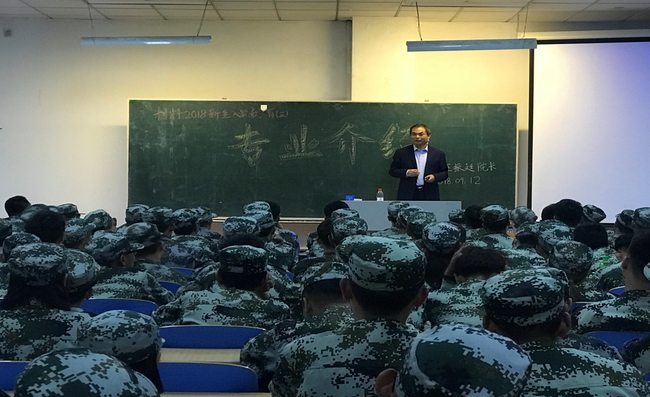 9月12日晚上,beat365手机版官网院长王振廷教授为新生开展了入学教育系列活动之专业介绍。会上,王院长向大家介绍了我院所设四个专业的师资力量、专业特色、发展前景,结合贴近生活的实例,使学生们对于专业有了更加深刻的理解,最后,王院长号召大家:“选材料,学材料,爱材料,成材料”。