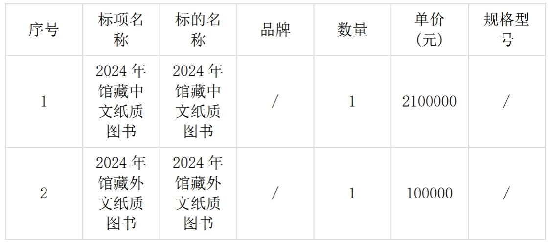 二、项目名称:2024 年馆藏中外文纸质图书采购