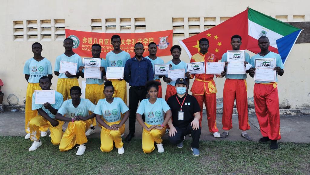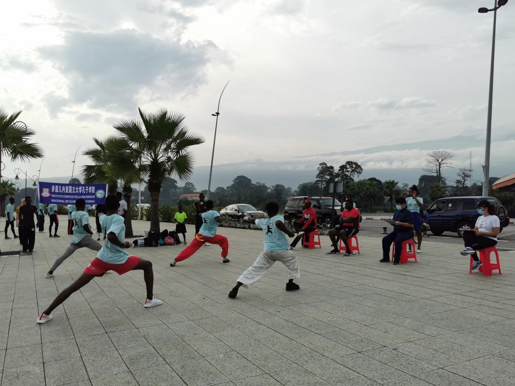 当地时间1114日,赤道几内亚国立大学孔子学院中国功夫俱乐部学员武术技能考核比赛在马拉博海滨大道举行。18名符合条件者参加了比赛和考评,分别表演了长拳、五步拳、少林步法等拳术及太极项目。