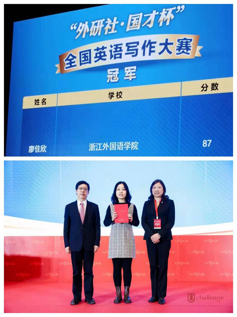 近日,2020年“外研社·国才杯”全国英语写作大赛顺利落幕。在英文学院肖奇民老师指导下,2017级英师1班廖佳欣同学喜获全国英语写作大赛总冠军。
