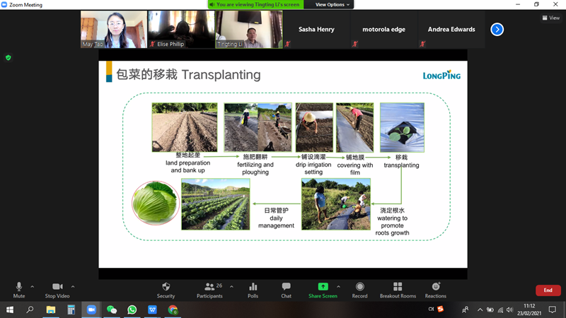 讲座也引发了学员的热议和思考。“能不能请项目组考虑选择一所学校作为基地,然后辐射所有的农学教师?”“把包菜栽培技术引入课堂,帮助学生在自家院子里实现蔬菜栽种的同时建立一个创业市场,帮助学生和学校去实现创收,这个主意怎么样?”“邓老师的讲座坚定了我自主育苗的信心与决心。”...... 交流之余,翁永特别感谢孔院促成这次合作。他说,农业援助、语言教学和专业教育的核心理念都是“授人以鱼不如授人以渔”。此次三方合作,是一次互利互惠的有益尝试,未来加勒比海岛国在农业与教育这两个领域可以寻找“更大范围、更宽领域、更深层次的合作”。