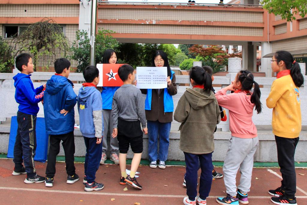 这是教育学院开展的“党史学习教育进小学”活动,大学生志愿者把精心设计的党史学习教育内容带到共建的党团队志愿服务基地小学的拓展性课程中。在操场上,国旗队的同学们体验了“长征路”。志愿者老师通过50米障碍往返跑,带领学生体会“红军不怕远征难”的艰辛;通过往返障碍跳,带领学生感悟长征过程中的“翻山越岭”。同学们还一同绘制了党旗、工农红军旗,诵读了《七律·长征》。四年级2班沈子炎说:“今天的课堂让我对红军长征时所表现出来的团结和毅力感到深深的敬佩,并对《七律·长征》这首词有了更深的认识。”