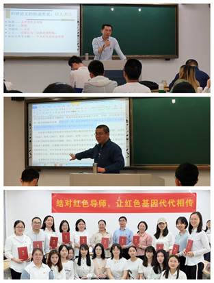 在英文学院,像何老师、冯老师这样的专业老师还有很多,他们既是专业老师,也是学院党总支特聘的“红色导师”,为深入推进党史学习教育,以“导学”促“联学”,广泛提升学生的科研参与度,学院党总支特制定“红色导师”方案,选聘党务工作经验丰富的党员干部和老同志担任党员“红色导师”,从党的理论学习、思想动态关注、生涯规划和科研引领等方面,指导帮助新生和青年教师成长进步。