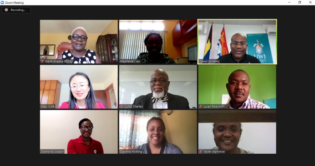 当地时间5月7日上午,西印度大学五岛校区丹索·威廉姆斯校长云端会见安巴孔院团队。