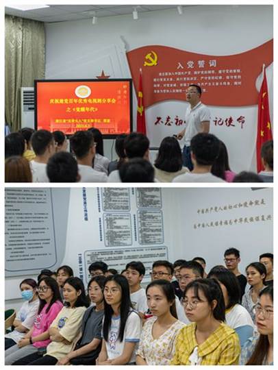 为庆祝建党百年,跨境电商学院、科技学院开展“建党百年优秀电视剧展播推介会”活动。6月3日下午,省高校“双带头人”教师党支部书记工作室负责人金融竞赛党支部书记应邀作客学院红色放映厅,向同学们推荐了优秀电视剧《觉醒年代》。