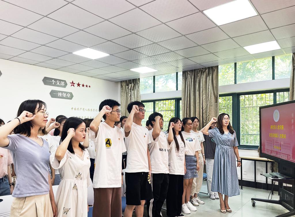 “我志愿加入中国共产党……对党忠诚,积极工作,为共产主义奋斗终身,随时准备为党和人民牺牲一切。”40余名师生党员在学院党总支负责人的带领下,面向党旗,庄严宣誓。党总支负责人通过回顾中国共产党建党百年来的丰功伟绩,激励师生党员“立大志,有担当,行大道”,鼓励大家时刻牢记中国共产党人的初心与使命,要求同学们以建党百年为新契机,身体力行践行青春的责任与担当。