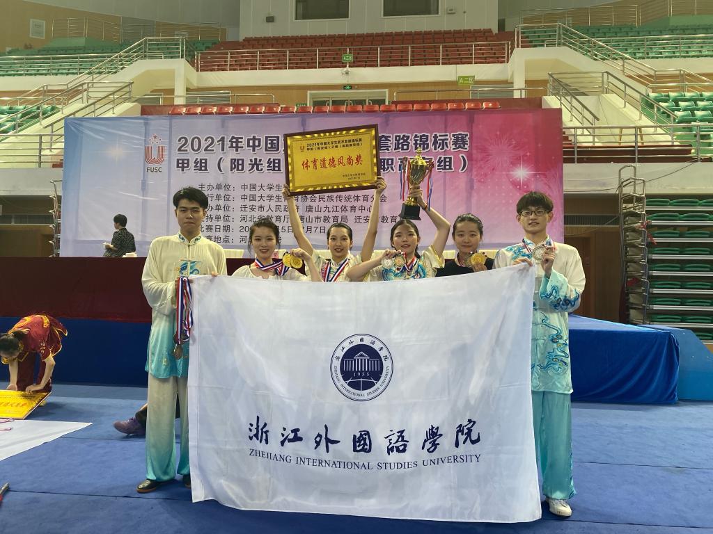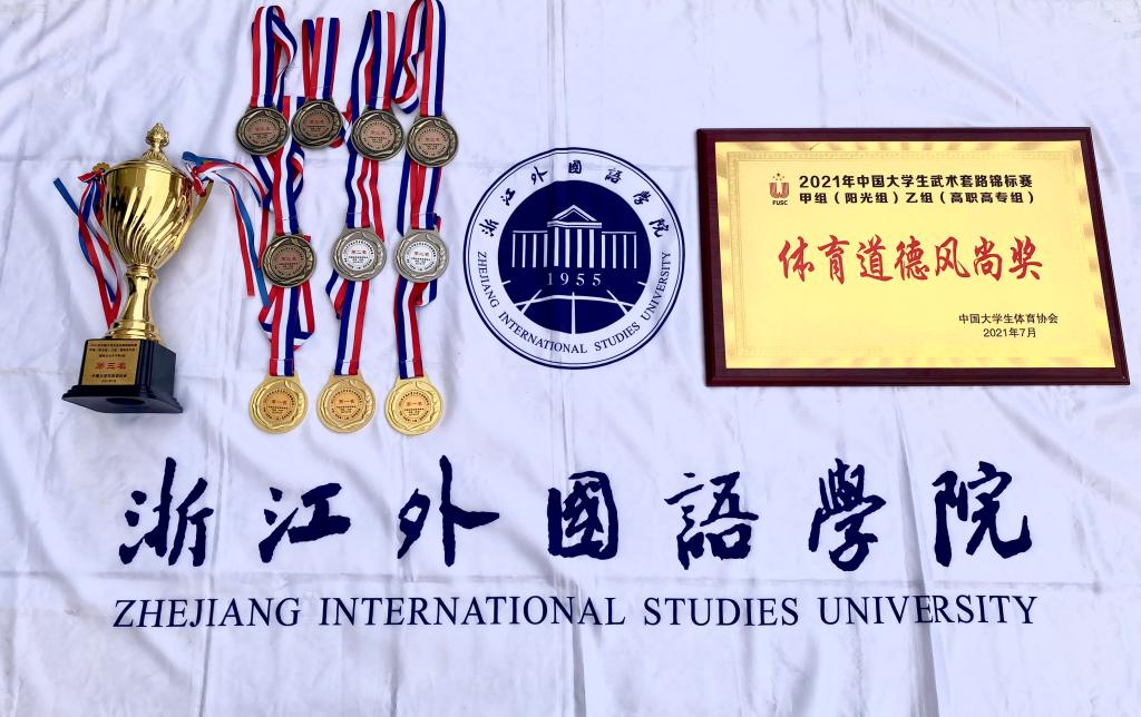 本次比赛共有来自全国89支代表队、500余名学生运动员参赛。开云官网六名武术队员不畏强手、奋勇拼搏,中文学院的吴怡同学恰逢毕业,毅然克服种种困难坚持训练,代表学校参赛,并且获得两枚金牌,为校争光。充分展示了浙外学子的精神风貌,体现了学校民族传统课程思政的育人成果。