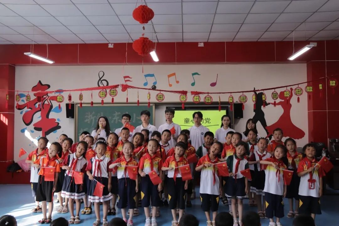 7月9日,实践团队与学生在东关小学拓展性课程成果展上合唱《同一首歌》
