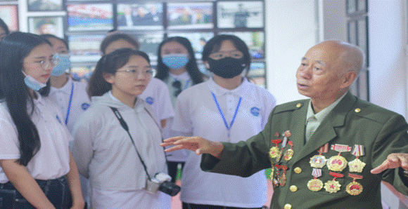 寻访老党员的实践活动中,团队成员们有幸见到曾先后参加了平息西藏叛乱、中印边境自卫反击战的呼荣碧老人。在他自筹资金、自发修建的延川县新时代文明实践红色教育基地里,呼荣碧老人为队员们讲述了他在西藏的战斗经历以及在各地参与红色研学的收获。