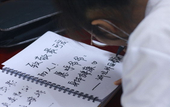 团队成员在呼荣碧老人爱国主义红色教育基地留言。
