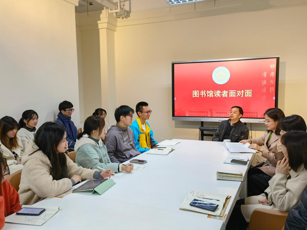 交流过程中,图书馆认真听取了同学们对空间设施、图书资源等方面的意见和建议,就近期读者关心的问题,如座位预约开放时间、违约措施、储物空间不足等,逐条向同学们反馈说明,并征询了同学们的意见和建议。图书馆负责人表示,图书馆是大学的重要组成部分,藏书和阅览是其两大主要功能,在满足师生文献资源需求的同时,图书馆将尽可能地为师生从事学术活动提供足够的空间。读者的意见和建议是督促图书馆更好提升服务质量的动力,希望同学们继续关注图书馆各项工作,常来图书馆阅览学习,学会利用好图书馆各项资源与服务。