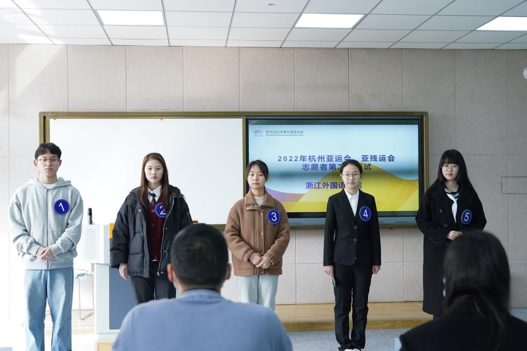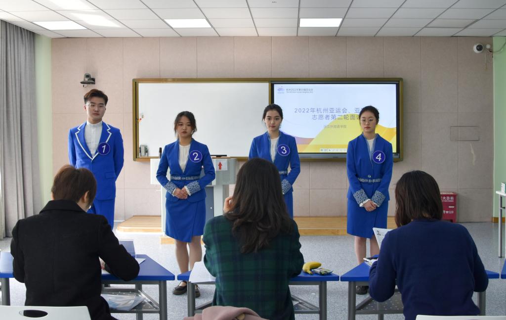 在学校亚运会志愿者第二轮面试中,像杨姝瑶一样积极投身亚运会志愿服务的浙外学子还有很多。自信的微笑,挺拔的身姿,他们用最真诚的表达,向面试官展现自己的热情与活力。