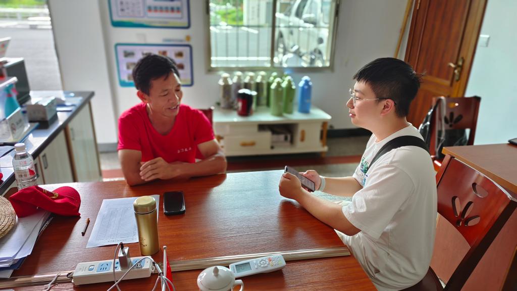 蔡帅楠:我们再访“初心”之路,追寻习近平总书记在白沙村的足迹;宣讲省第十五次党代会精神,把握时代脉搏;依托新媒体帮助当地宣传推广,将所学理论付诸实践。在此期间,虽然连续顶着40℃的大太阳,虽然嘴边一直挂着“太累了,走不动了……”,但是没有一人放弃,大家用自己的双脚、双手完成一个个任务,这也是我们需要坚守的初心。