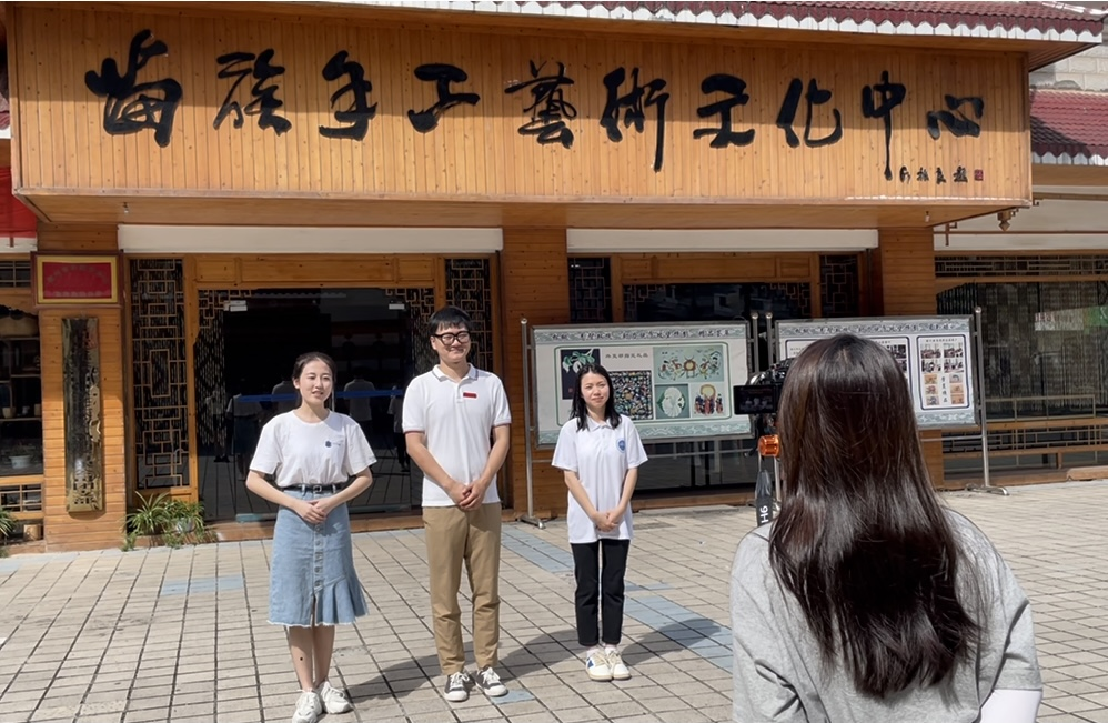 在苗绣手工艺术文化中心,队员们对着镜头,用英语、日语、西班牙语、法语和松桃方言,对馆内代表性苗绣作品进行详细解读,向世界展示民族文化的魅力。“民族的就是世界的,利用多种语言宣讲苗绣文化可以让更多国际友人体会到我们苗绣之美,作为外语学子,我们更应发挥专业优势,立足国际视野,探索传统文化‘走出去’的最佳路径。”英语(师范)专业袁于岚感慨颇深地说。
