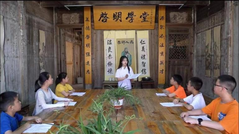 在雅阳百福岩村启明学堂中,团队宣讲员面向中小学生开展了一堂别具诗意的党代会精神宣讲,以“板凳”宣讲的形式,依托当地丰富的氡泉、飞云湖等文旅项目及非物质文化遗产,引入敢为人先的温州山海精神,结合省第十五次党代会中强调的共同富裕,生动呈现只有传承历史、守正创新才能走出一条世代传承的精神富裕之路。