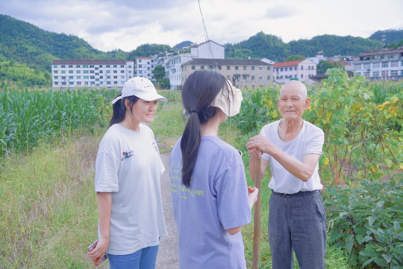 实践团队在田间地头调研村民生活现状及红色文旅印象。