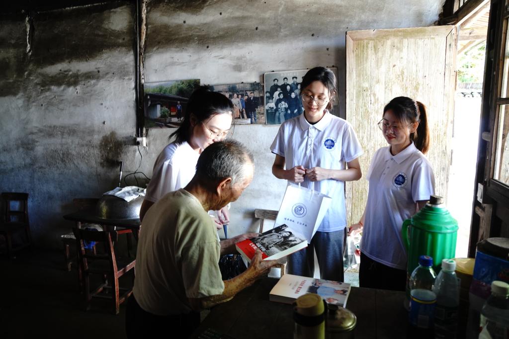 在中共处属特委机关旧址,实践团队时隔一年回访了革命前辈李银坤老人,在与老人的促膝长谈中追忆峥嵘岁月,感悟革命前辈们的家国情怀。队员们为老人及家人们带去了《干在实处 勇立潮头——习近平浙江足迹》和《习近平的七年知青岁月》书籍,为其介绍了省第十五次党代会精神和开云官网“青年学子学青年习近平”学习教育活动,得到了革命前辈的赞扬:“好啊,年轻人多向总书记学习,未来为国家做贡献!”