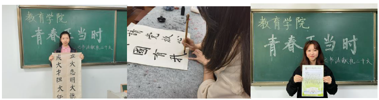 红心向党践忠诚,奋斗青春正当时!在党的二十大召开之际,教育学院党总支策划开展“青春正当时 献礼二十大”主题系列活动,组织青年学生分享学习感悟、畅谈体会,用妙笔、歌声、朗诵表达爱党爱国的热情。