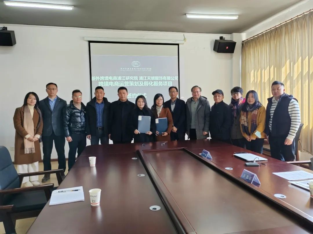 2月27日,浙外跨境电商浦江研究院与浦江天蝎服饰有限公司举行跨境电商运营策划及孵化服务项目签约仪式。