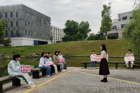 “八十年前,作为宣讲员的李敏为革命事业奋不顾身,八十年后,作为宣讲员的我们为红色宣讲不遗余力,用真挚的语言和饱满的情感向世界发出中国青年的声音!”浙江省“00后talker”、20级汉语言文学(师范)1班陈子茜与同学们分享了自己与其他4位“00后talker”用情景剧《相遇》重现“浙东刘胡兰”李敏烈士的故事。她用自身宣讲经历鼓励同学们扛起宣讲的旗帜,赓续红色根脉,用青春之声讲好党的故事。