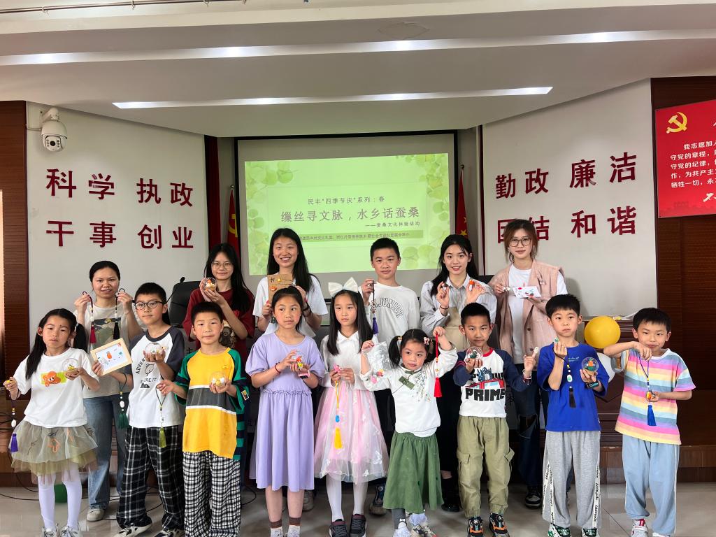 除了展览,调研团队还在民丰村举办蚕桑文化体验课,以“课堂+游戏”的形式,在轻松愉快的学习氛围中,给小朋友们科普了蚕桑文化知识。