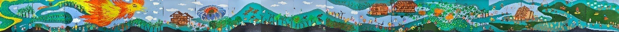 队员们汲取畲乡特色和民族画创作技法,将收获到的技能和精神转化为实践,大手拉小手,与鹤溪小学生们共同尝试绘制了一副长达19米的民族画长卷,同绘第19届亚运会的蓝图。