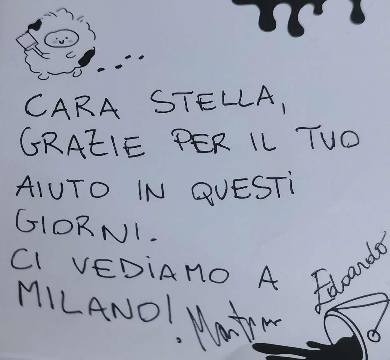 除了收获成长,“小青甜”们也收获了深厚的国际友谊。2位意大利展商在“小青甜”返杭之际,还特地亲笔手绘了感谢信,信中说到“感谢这几天给予的帮助,我们米兰见!”“献你一个大大的拥抱!”