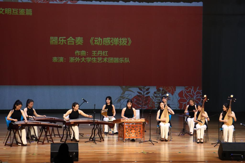 艺术缤纷校园,美育激扬成长。近日,浙外师生团队走进宁波大学“2023高雅艺术进校园”专场音乐会和浙江艺术职业学院歌舞专场《绽放的青春》,在“高雅艺术进校园”系列活动中为两所高校师生带来精彩的节目展演。