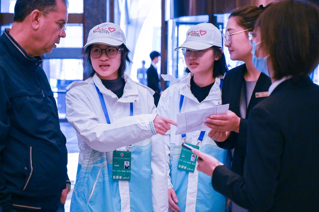 大三的赵洪阳在本次论坛中负责外宾抵达酒店后的场地指引,在亚运会中她作为“小青荷”担任伊拉克代表团的NOC助理,这次志愿服务再次服务阿拉伯外宾让她倍感亲切。“看到学姐学长们怀着对志愿服务的赤诚,对推动中阿友谊不断发展的热切期盼,在繁忙的毕业季里抽出时间参加此次志愿服务。他们过硬的专业能力与丰富的经验是我学习的榜样和前进的方向。”赵洪阳说。