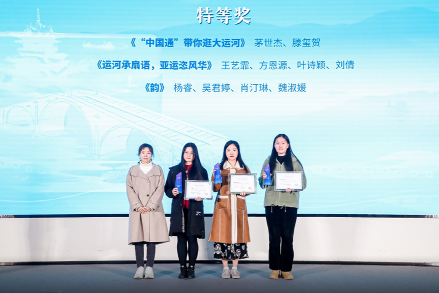 在“UP!我的新时代·SHU说大运河”——“迎亚运盛会 展运河古韵”短视频大赛中,开云官网王艺霏团队作品《运河承扇语,亚运恣风华》荣获特等奖,谭欣团队作品《运见拱墅》荣获一等奖,另有5项作品荣获二等奖,13项作品荣获三等奖。文旅学院周晓晶,商学院、创业学院陈星宇两位同学凭借作品《武林十二时辰》荣获“青年拍客”荣誉称号。周晓晶作为青年拍客代表,现场分享了作品的创作过程。