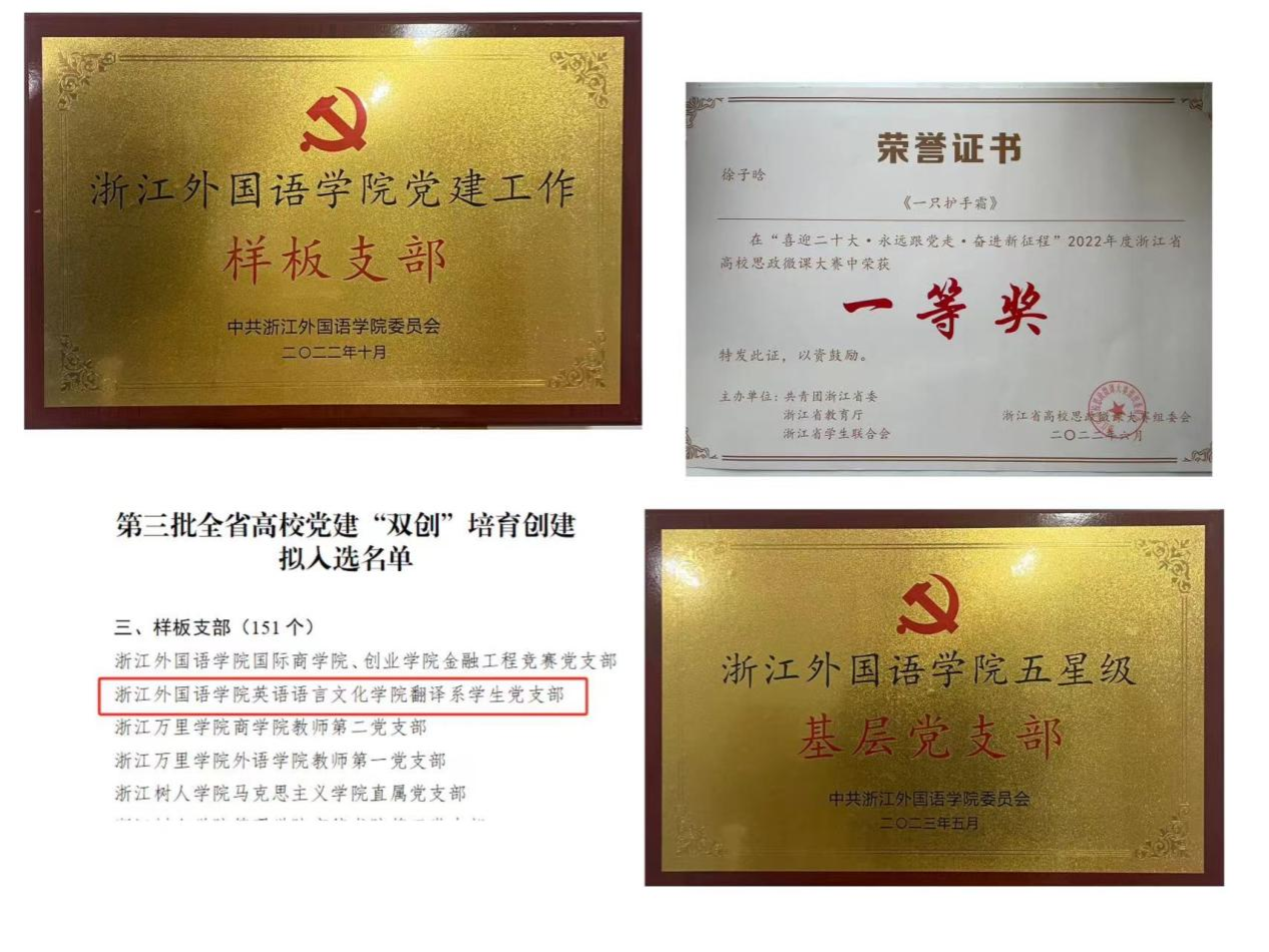 英文学院党总支主动对标学校发展战略目标,结合学院实际,聚焦“围绕中心抓党建,抓好党建促发展”,做到党建谋全局,党建引领,规划蓝图。聚焦学校战略发展,系统谋划“五大建设”,推进“四个融合”,构建系统集成发展框架,梳理改革学院制度体系,建立协同高效工作机制,不断提升组织体系整体效能,统领学院办学方向。给力量,聚焦创新,推进改革。夯实支部建设、改造升级专业、构建学科团队等,深化落实举措,完善目标管理,确保高效发展。促发展,凝练文化,提振士气。打造精神文化、制度文化、景观文化、关怀体系,充分激发办学活力,强化“勇立潮头、争创先锋”文化氛围,不断统一思想、凝聚共识,推进事业发展。获评省级党建“双创”项目样板党支部培育创建单位、校优秀基层党组织,校级党建工作“样板支部”培育创建单位,翻译系学生党支部连续四年获评校“五星级党支部”和校级党建工作优秀案例;学院党总支多次在二级党组织书记抓党建工作述职评议中评价为“好”;学院党员师生获浙江省思政微课大赛教师组一等奖、浙江省微型党课大赛三等奖、浙江省党建课题立项等,3人获评校“最受师生喜爱的书记”。