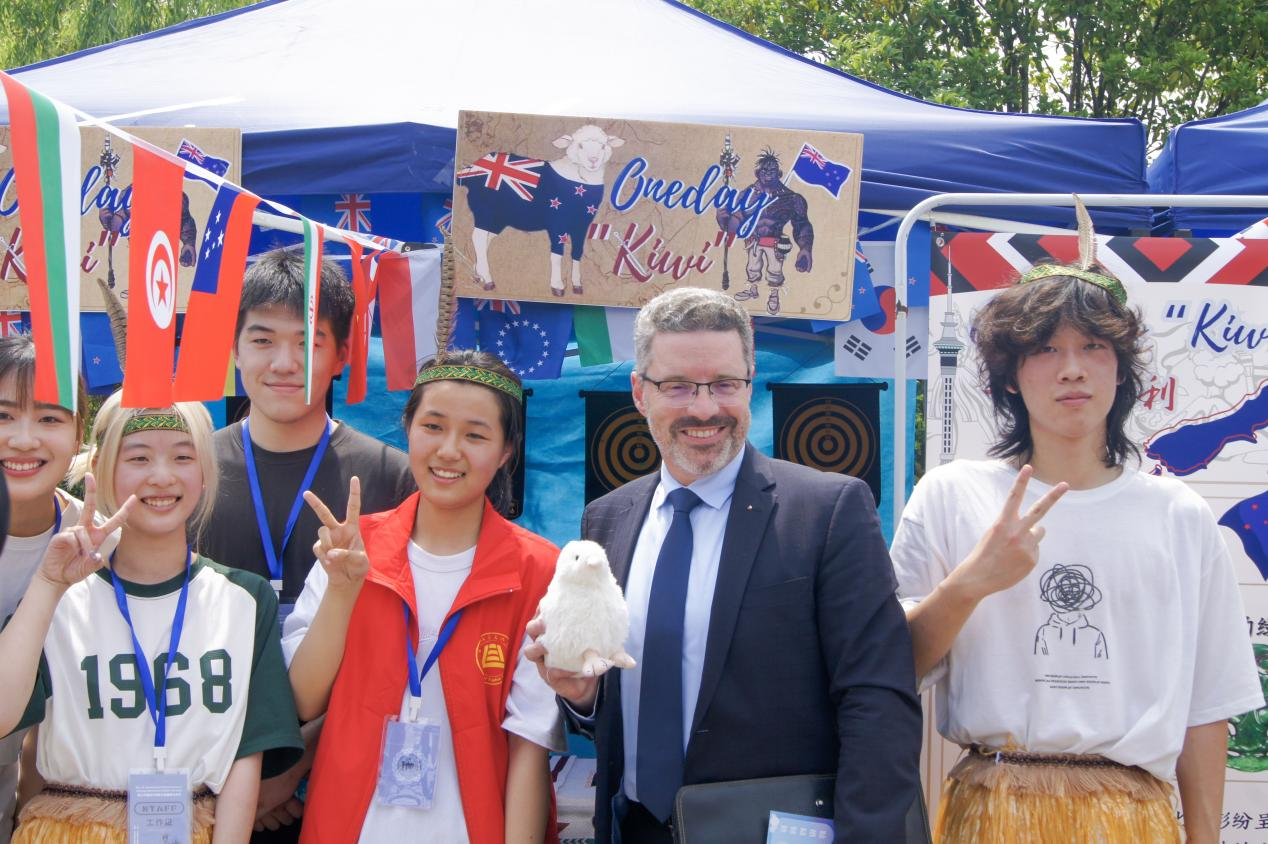 国际文化节上,学生与捷克共和国驻沪总领事馆总领事史诺先生交流。