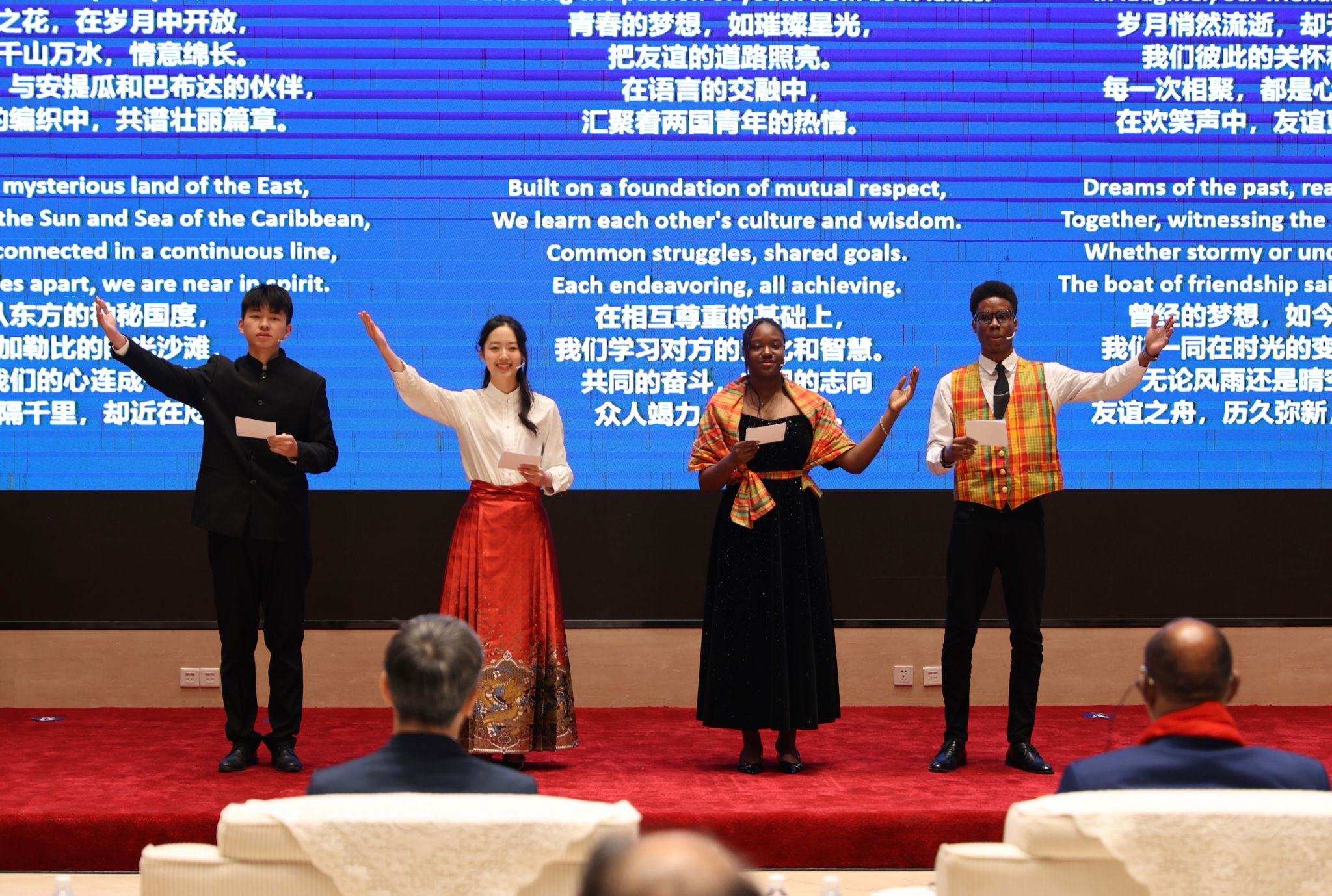 学生为安提瓜和巴布达总理贾斯顿·布朗朗诵原创诗。