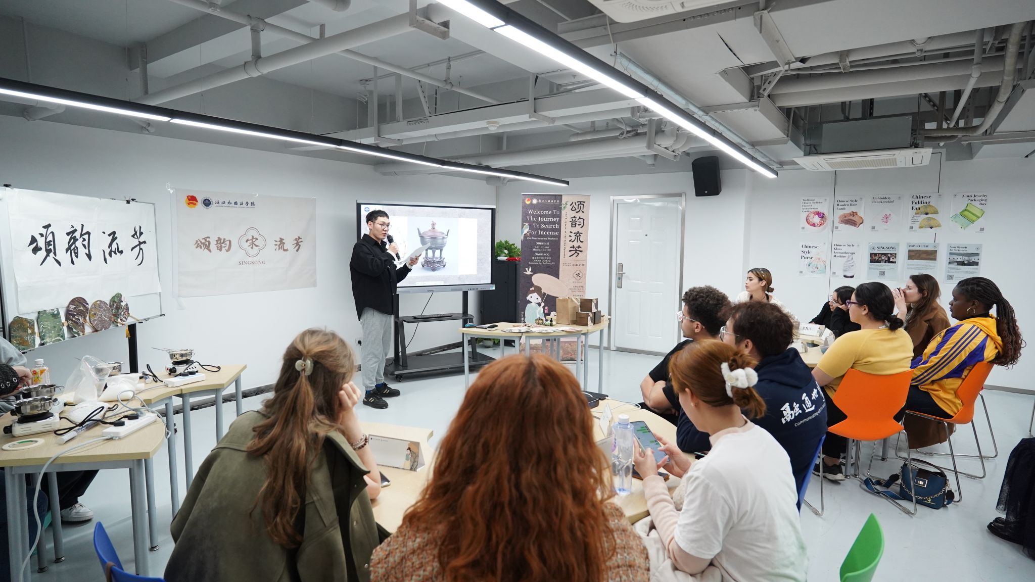 为弘扬中华优秀传统文化,让千年宋韵“流动”起来、传承下去,3月21日,在学校校园文化社区内,一场精彩纷呈的宋韵文化体验活动正如火如荼地进行。现场,来自俄罗斯、摩洛哥、韩国等8个国家的20余位留学生正沉浸在典雅舒馨的宋韵文化氛围里,听宋词古曲,品宋代香道,制作香薰,参与宋韵文化知识趣味问答。