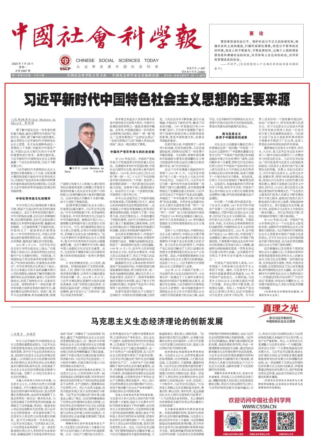 巴西籍全职特聘教授施若杰在《中国社会科学报》头版头条发表理论文章,并被《新华文摘》转载。