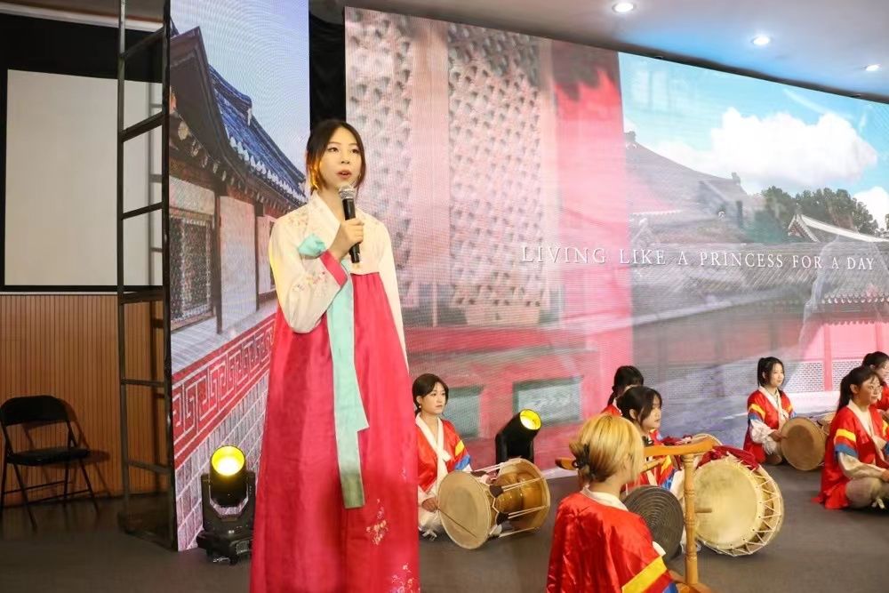 学生参加第三届中国大学生韩国语短视频大赛颁奖典表演。